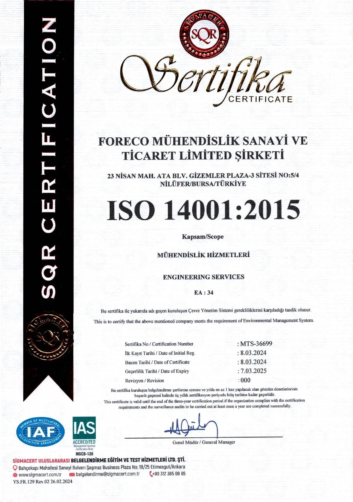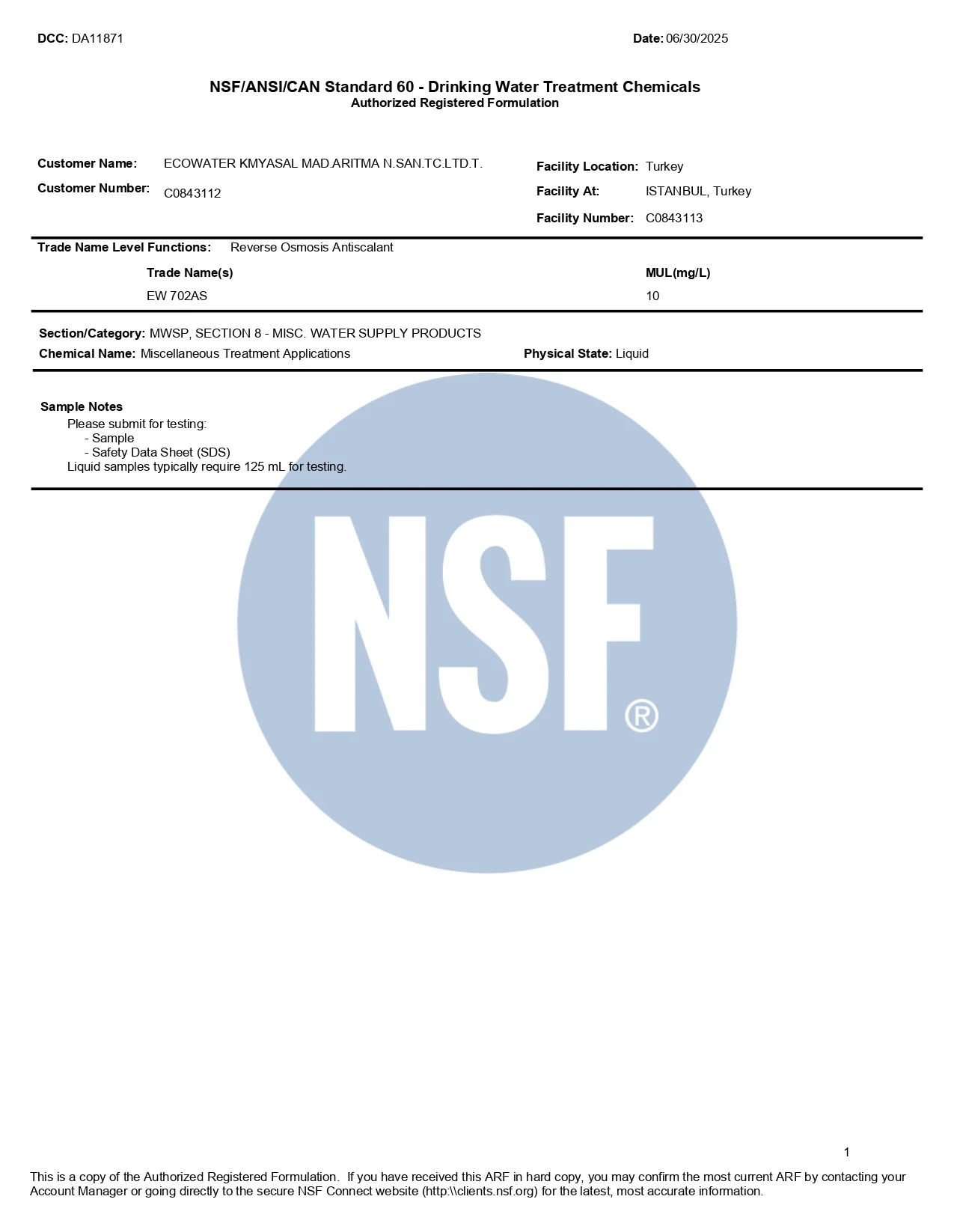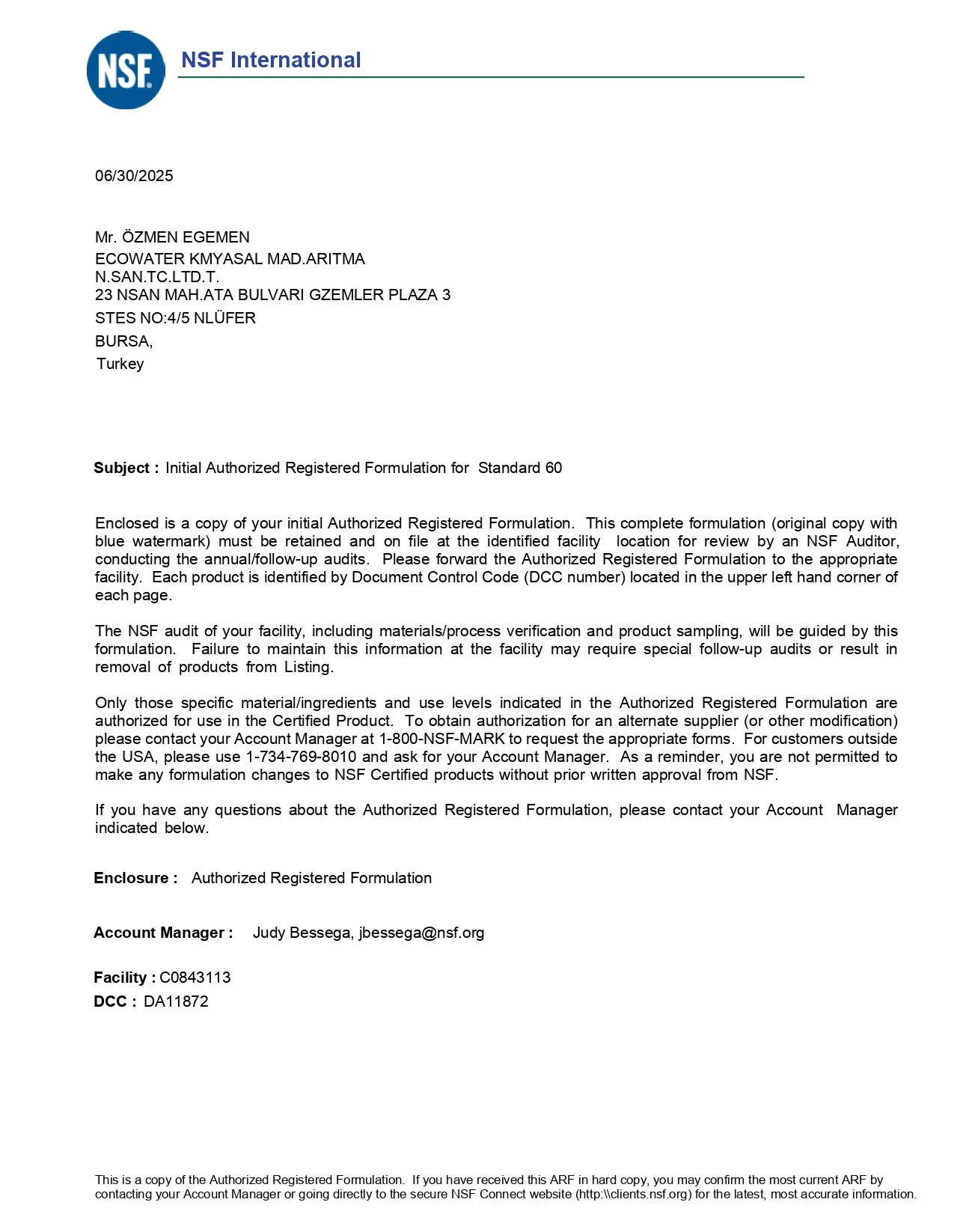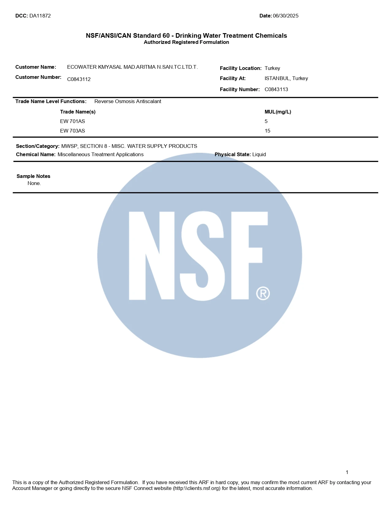 Belgelerimiz / Sertifikalarımız (ISO & NSF)