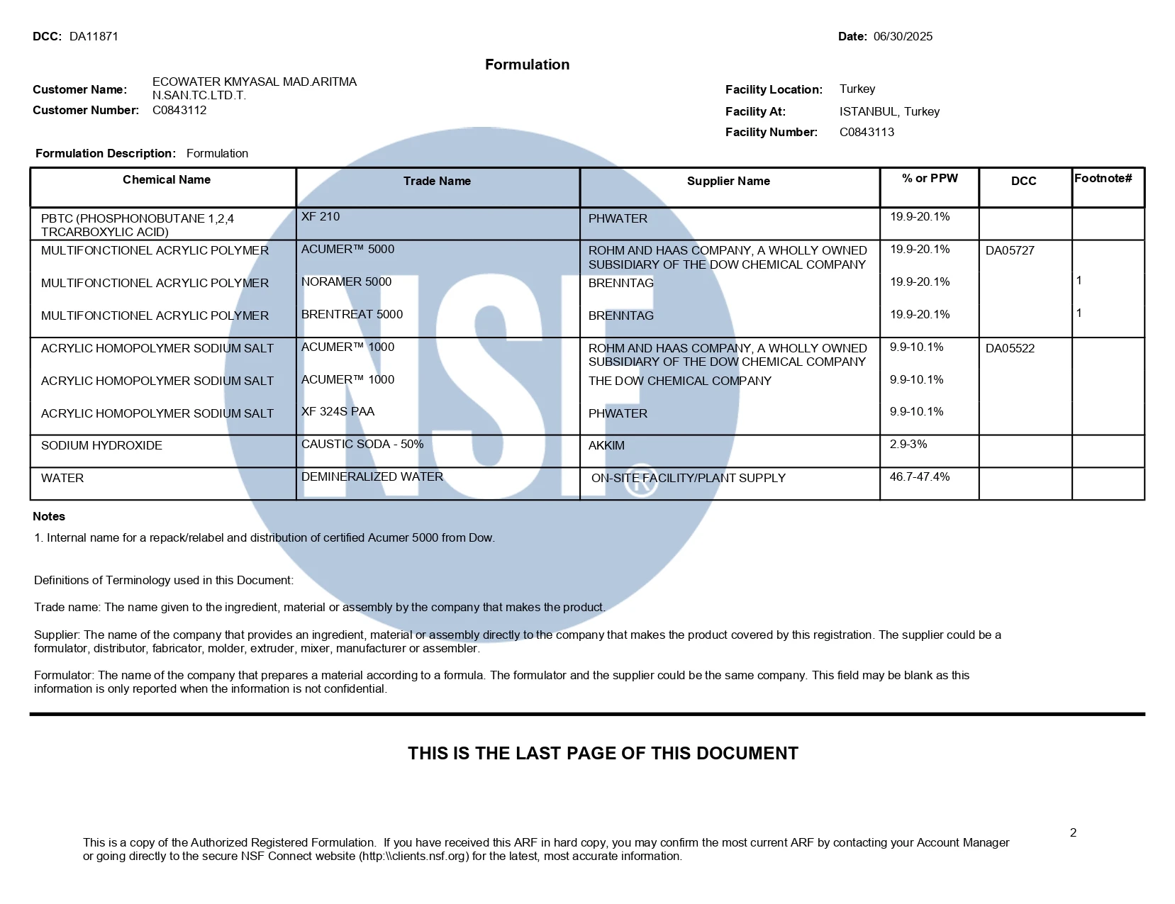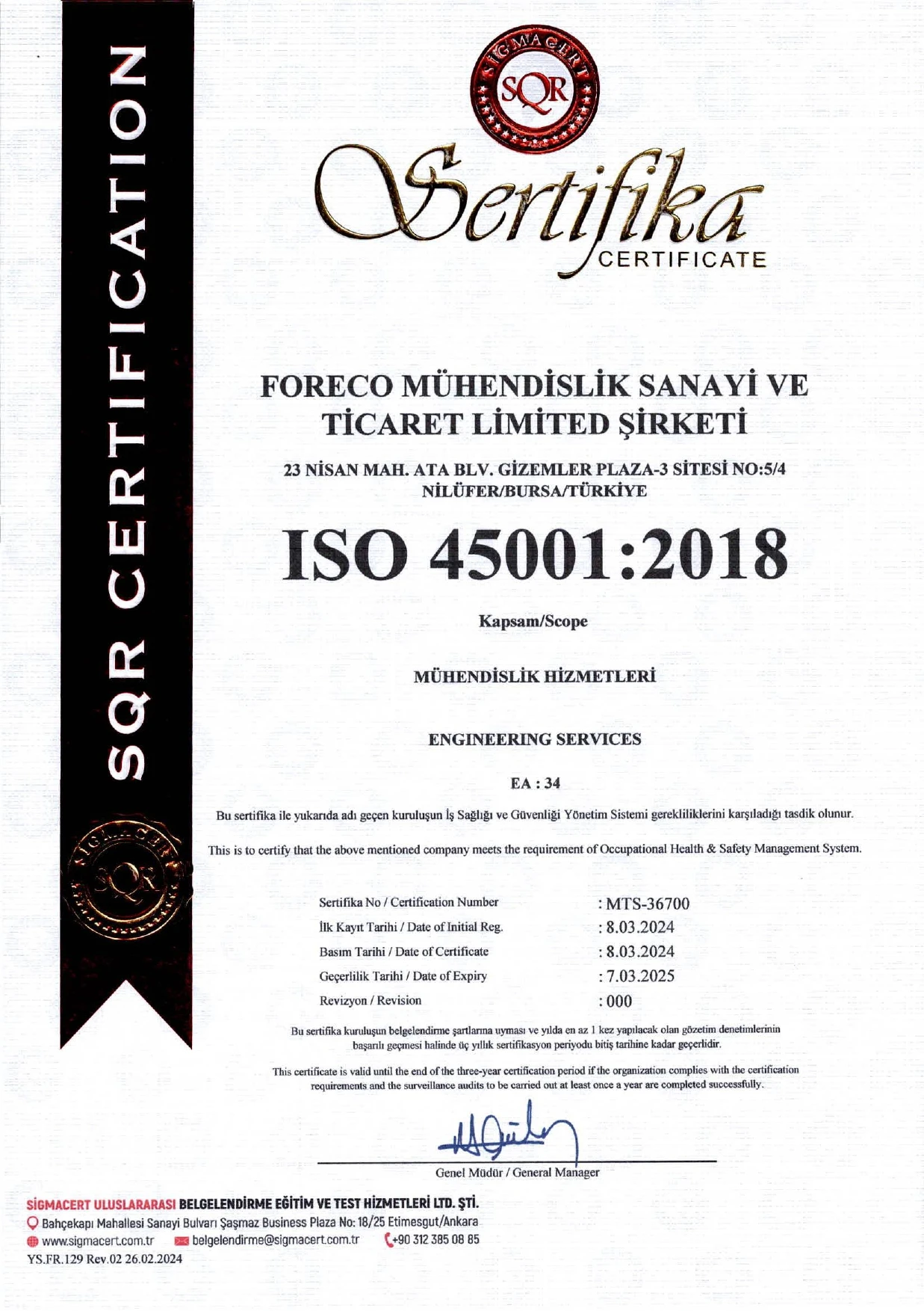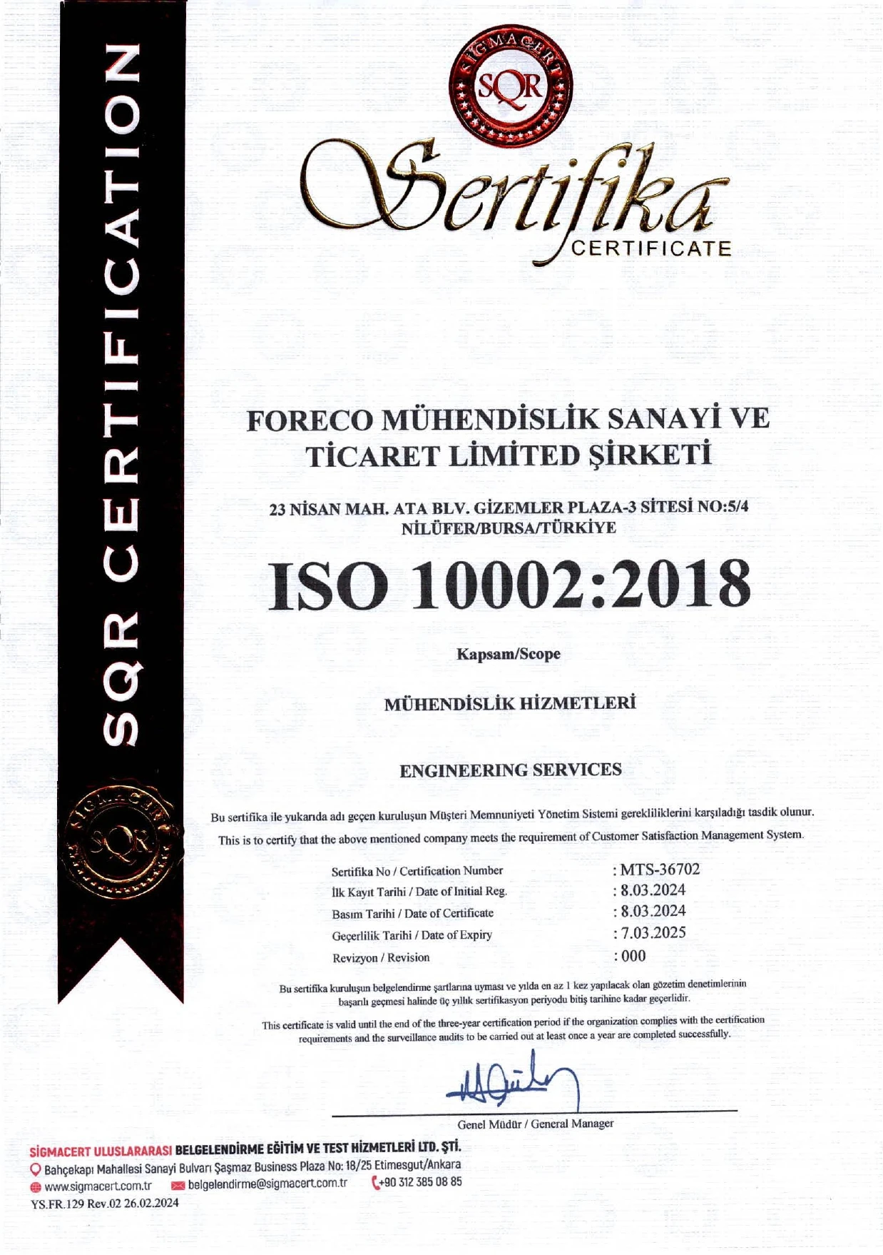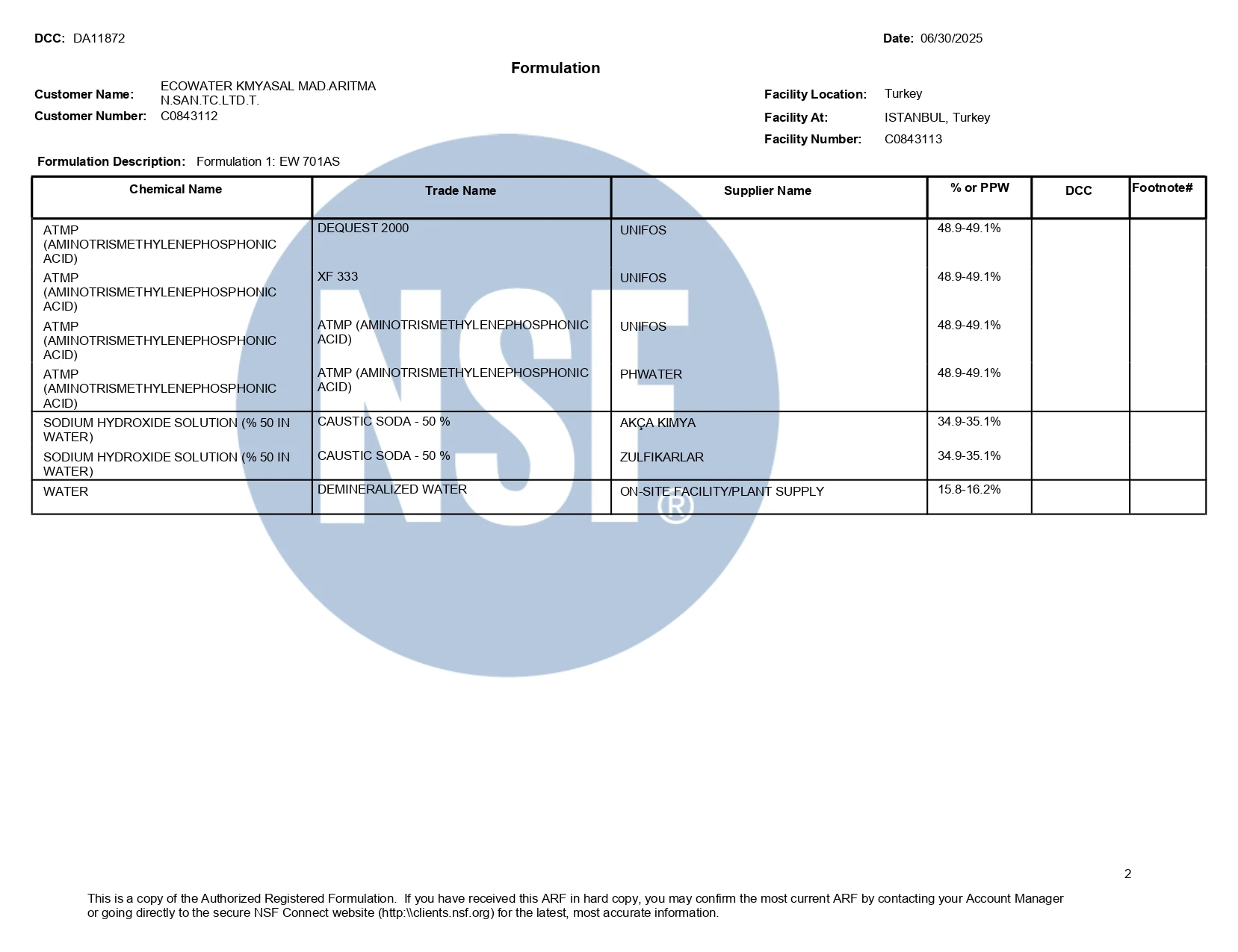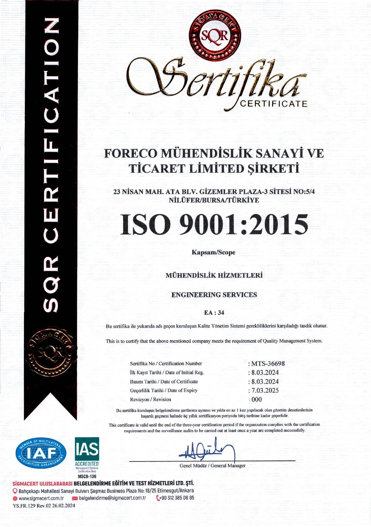 Belgelerimiz / Sertifikalarımız (ISO & NSF)